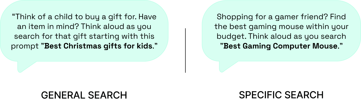People shop in completely different ways. So, we had all our testers evaluate the platform through two different lenses: