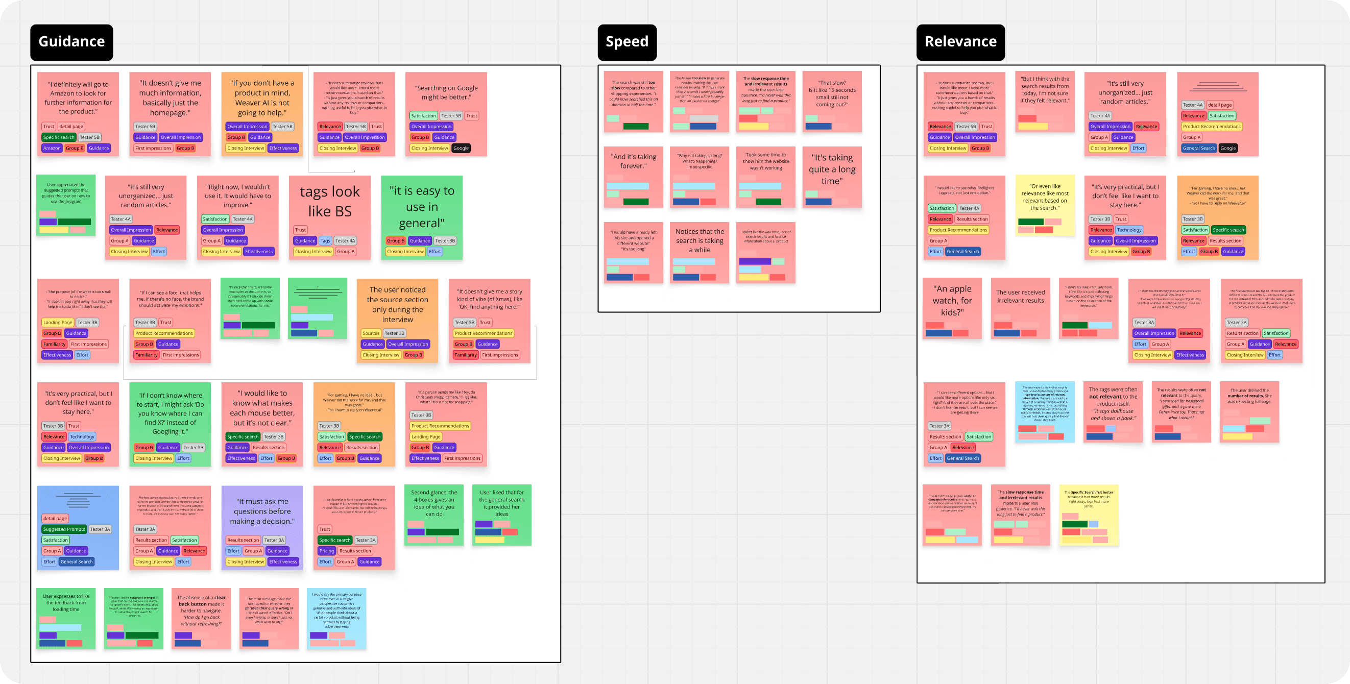 To make sense of all the think-aloud feedback and interview transcripts, I built an affinity diagram.